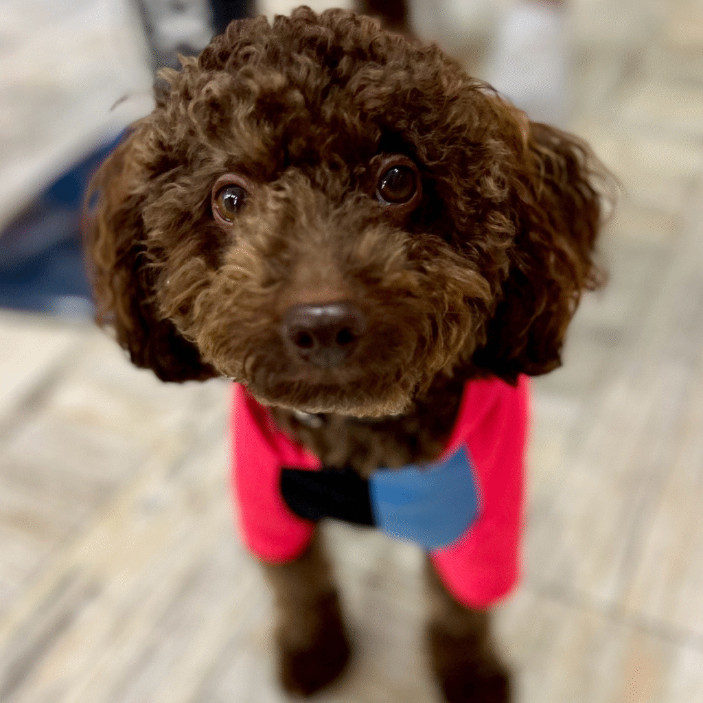 お店の人気者は、トイプードルの看板犬・マルクル!愛らしい笑顔でお客様を出迎えてくれます
